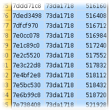 Sos.dll can also dump all of the objects of a certain type and the memory addresses – handily you can then take a look at the memory locations themselves to see what is up. I wanted to take a look at the System.Char[] objects so the command is !dumpheap –type System.Char[]. Again I dumped some of these in to Excel.