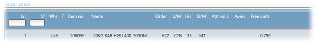 We use the Free Cap Units to represent the number of cartons we can fit in to a 20′ container. We have a modification which takes the quantity a user entered in to OIS101 and divides it against the Free Cap Units – this gives our staff an idea of how much of a 20′ container product is consuming. We have a percentage per line and a total percentage