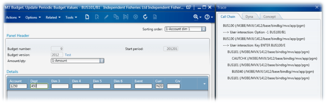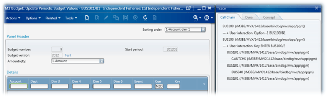 BUS100 works a little differently to other programs which you will see below, let us use Trace to see what happens when we key in a budget normally.