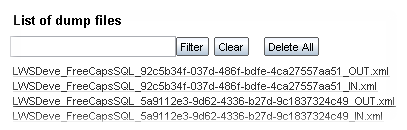 If we turn on the “Create dump files for SOAP messages (files are stored in <Grid>/application/LWS/dumps)” we get a in and an out with the envelopes
