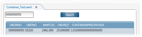 So, the Mashup has an order number that we enter, then we hit the Search button which will populate the DataListPanel β the result is below:
