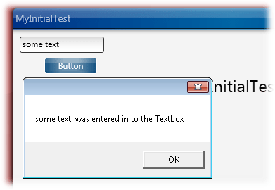 MessageBox.Show("You clicked a button and the text in the textbox was" + Environment.NewLine + textBox1.Text);
