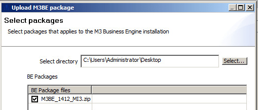 Select the directory where the package resides and it will find the .zip file. Tick the M3BE_1412_MI3.zip file that we downloaded earlier.