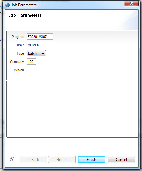 Enter the Program name (eg. MI_JT177643_01) and then select an appropriate user that has rights to everything and click finish.