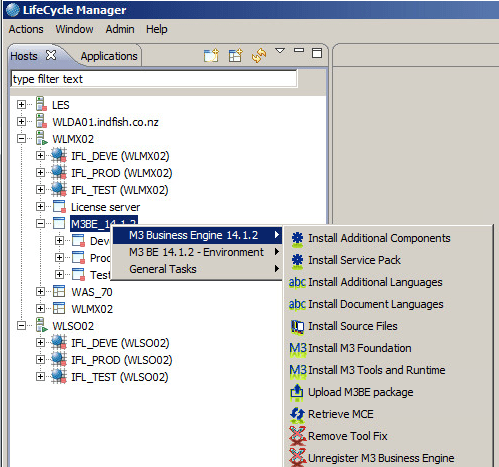Now we do the install itself. Right click on your Business Engine -> M3 Business Engine 14.1.2 -> Install Additional Components