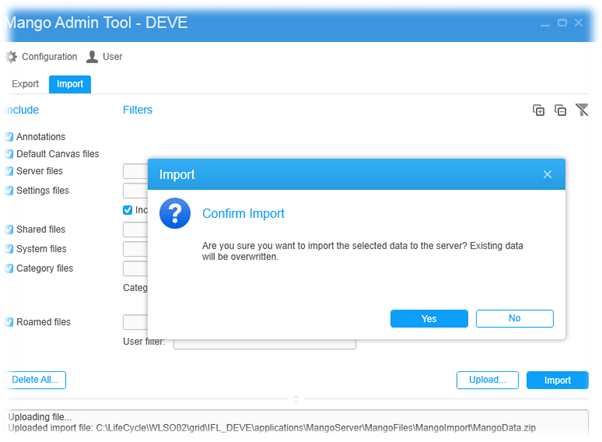 26. And now we use the Mango Admin Tool to Import the old settings