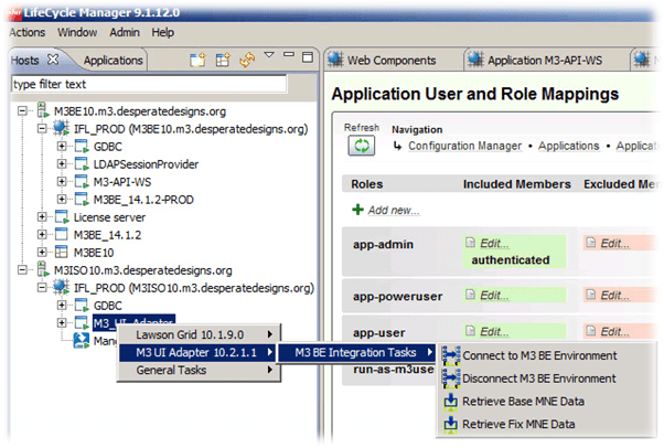 - In LCM, find the M3_UI_Adapter, Right Click Lawson Grid 10.1.9.0 -> Application -> Configure Application -> Edit Role Mappings