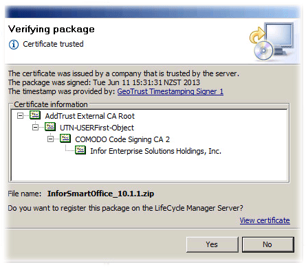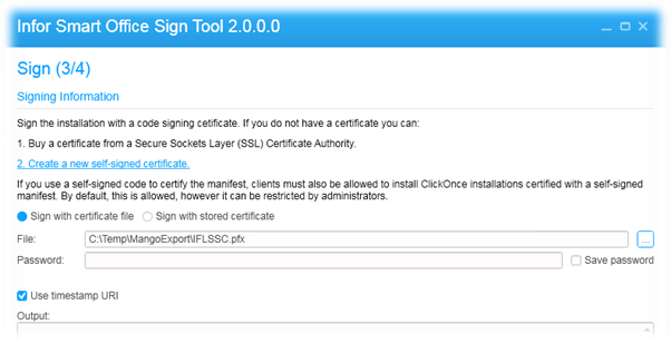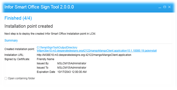 Now we need to sign it - We need to set up a cert for self signing the installation. To do this we need the SignTool which is in the “InforSmartOffice_1011_LCM9.zip” file we extracted.