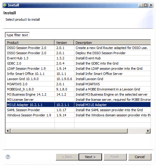- Install the M3 UI Adapter LCM -> Actions -> Install -> M3 UI Adapter 10.2.1.1