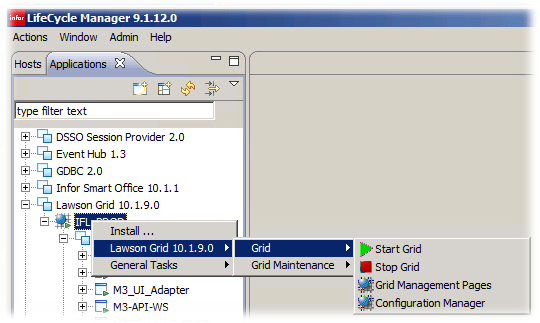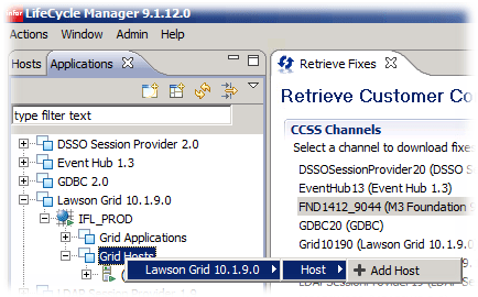 - LCM -> Applications -> Lawson Grid 10.1.9.0 -> IFL_PROD -> Grid Hosts, Right Click -> Lawson Grid 10.1.9.0 -> Host -> Add Host
