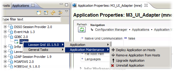 - Deploy GDBC on M3ISO10 – the Smart Office server. LCM -> Applications -> GDBC 2.0 -> GDBC, Right Click ->Lawson Grid 10.1.9.0 -> Application Maintenance -> Deploy Application on Hosts