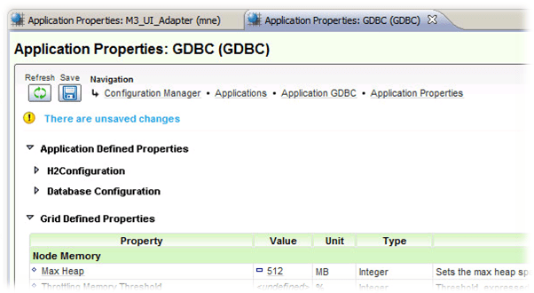 - Application Properties -> Grid Defined Properties -> Max Heap should be set to 512