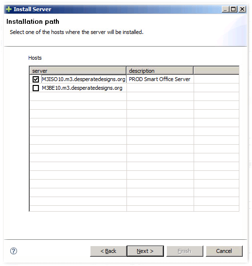 Note: that the ports are those that we recorded earlier! - Select the server that we are going to install against. M3ISO10