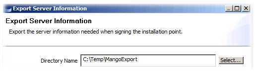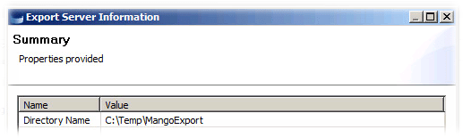 - You’ll be prompted for a location to export to. I’m going to export it to C:\Temp\MangoExport on my LCM Server