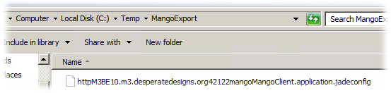 - Select the .jadeconfig we exported earlier (I exported it to C:\Temp\MangoExport)