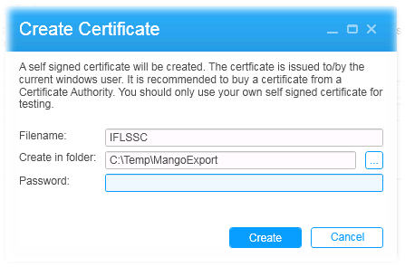 - Click on the Create a new self-signed certificate