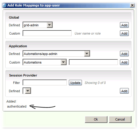 - Because I am lazy and don’t need to worry about other people having administrative access, I am going to once again use authenticated, and I’ll also add grid-admin so I can change that later if I decide to. Click Add