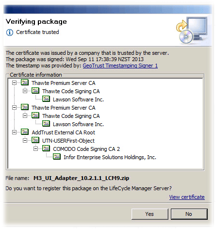 - Yes to verify the package