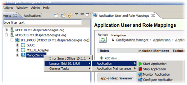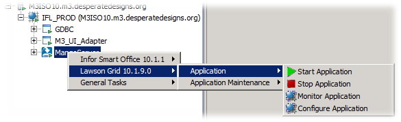 - We need to do the same thing for the MangoServer. Right Click on the MangoServer -> Lawson Grid 10.1.9.0 -> Application -> Configure Application