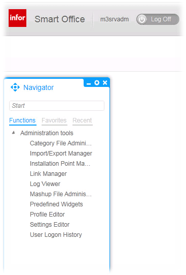 - Log back in and we should see Infor Smart Office 10.1.1 and M3 UI Adapter 10.2.1.1