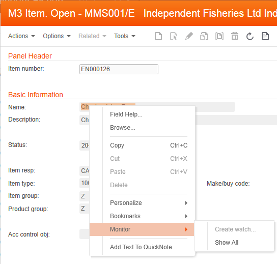 It didn’t take long before a partner emailed me about the missing watch menu. So we added the functionality back in fix 1 or fix 2 but then the menu says “Advanced” and Show Field Information. You can also select copy field information to copy the information to the clipboard.