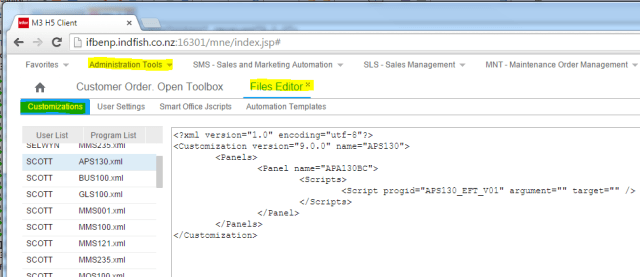 Infor provide the H5 client as a cross platform client to the M3 BE, recently I came across a document that provides a starting point for creating scripts like you do in Smart Office – this is a bit of a rough brain dump on my initial observations.