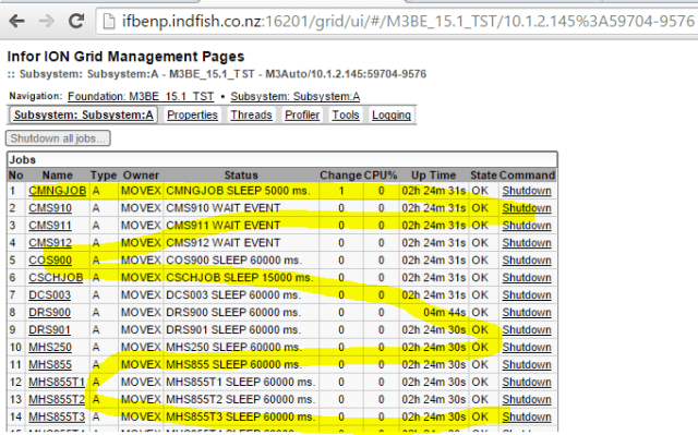 I had a brief look at 13.3 and its monitoring – and to be honest I was pretty disappointed, they weren’t terribly intuitive to set up and looked very limited (granted, my scripts aren’t terribly stellar – but…). I will need to sit down and take a good look – I really just wish Infor would add SNMP support to the grid – then it would be easy to integrate in to most standard monitoring packages without need for complex scripts and without the need for fairly heavy handed communications just to check the health of the system and trends.
