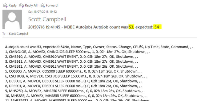 Once we went to the grid, this was no longer possible due to how the grid structured its data and I couldn’t determine a way to scrape the screen given it was generated through Javascript and ajax calls. But at that point of IFLs M3 journey, autojob issues weren’t as common so rather than spend the time looking for clever ways to do things it just became a part of the morning process to check the autojobs with a webbrowser. As I had a staff member that I could fob this task off to, I was happy 🙂