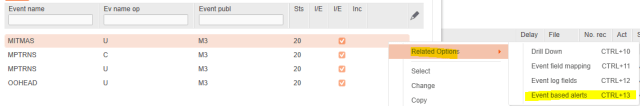 Right click on our newly created entry and select Related Options -> Event based alerts