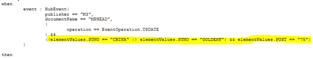 Which is nice and lightweight and all contained within the M3BE. However it is pretty limited with only three different filters that you can define. As I mentioned in the previous post, you can user e-Collaborate or ION – of-course I missed Event Analytics as another option – it has a drools engine for us to define rules and then ‘do stuff’ 🙂