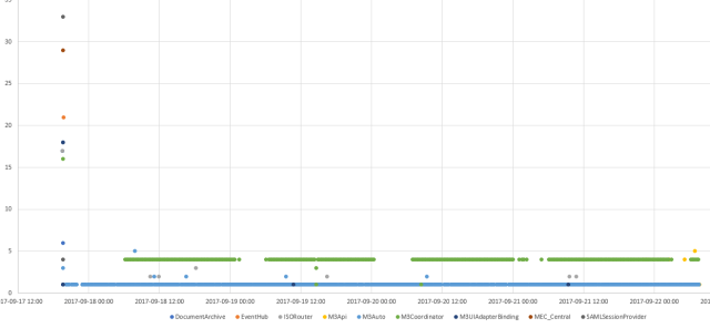 I wrote a quick little Powershell script which loops through the nodes and will retrieve the notes, warning and error events from the logs and will then dump them out to the console. I redirect that output to a html file and then I can copy the data in to Excel and filter and sort as I see fit – even create scatter graphs to look for correlation.