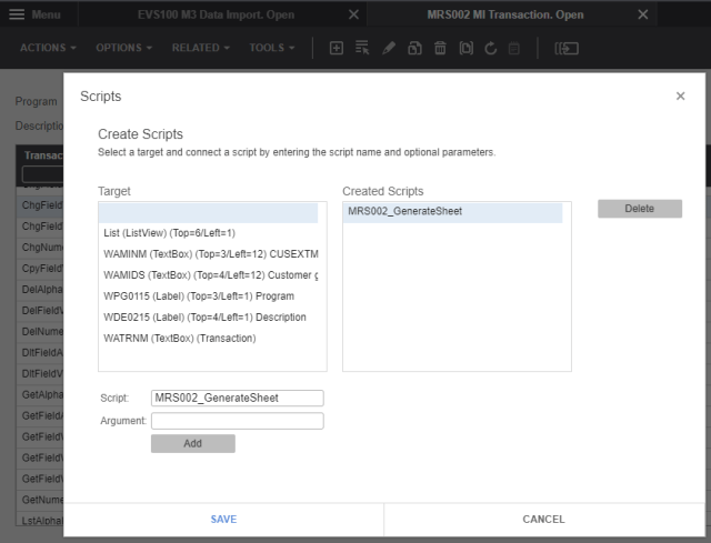 After uploading the script to the tenant, the script needs to be attached to MRS002/B