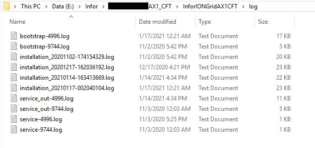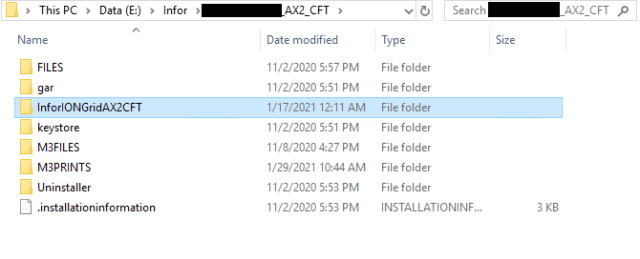 So my normal installs will look like this β my CFT directory is <tenant>_<tenant type>_CFT sits under a the directory Infor. You can see below that the grid directory is InforIONGridAX2CFT.