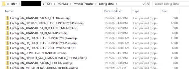 An example would be PRD_MVX_100_All_AllTables.zip, which would be from the PRD tenant, MVX component, company 100, all divisions, all tables.